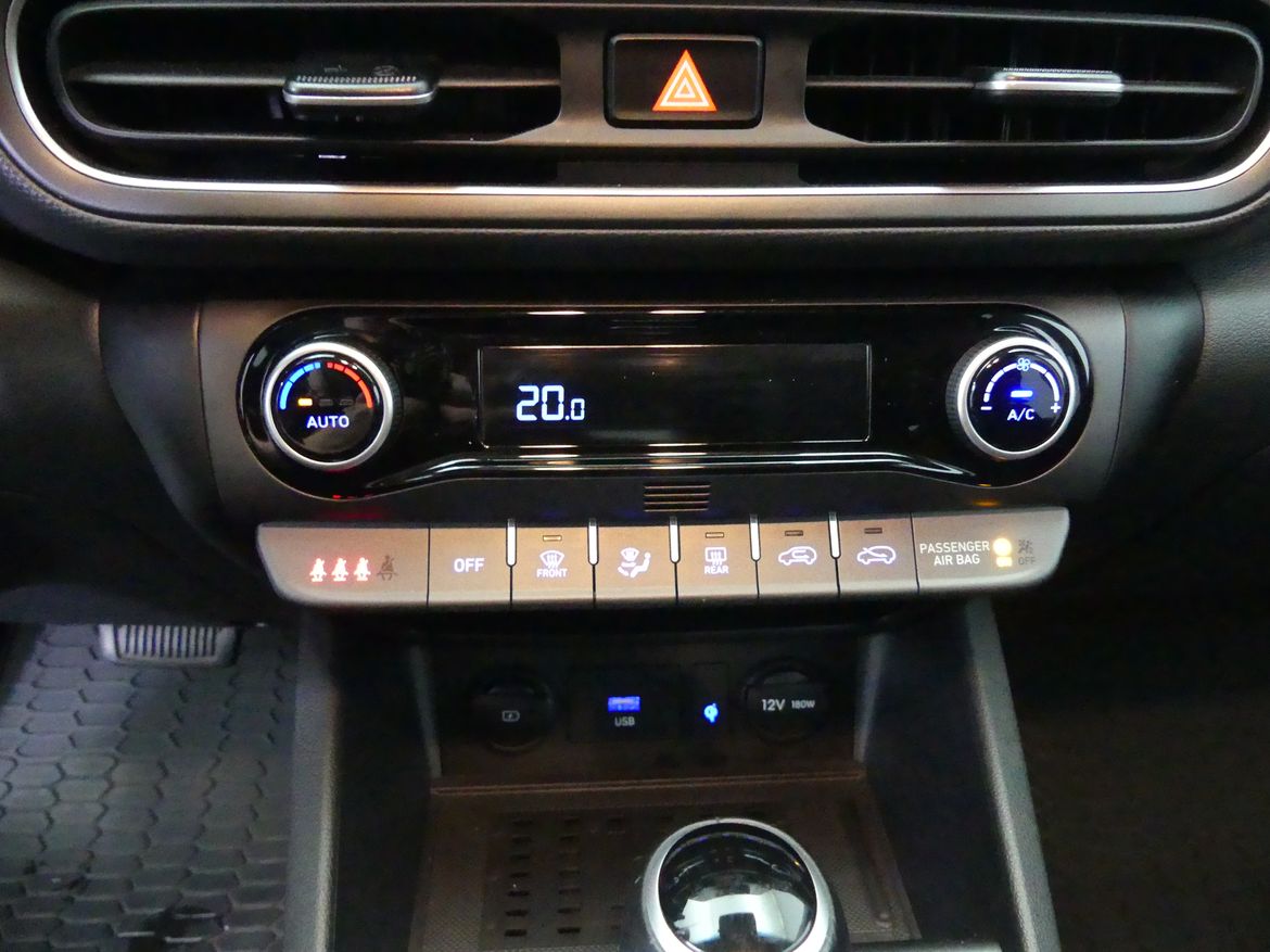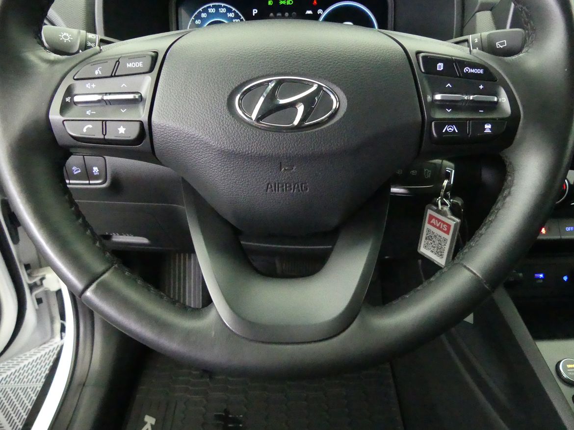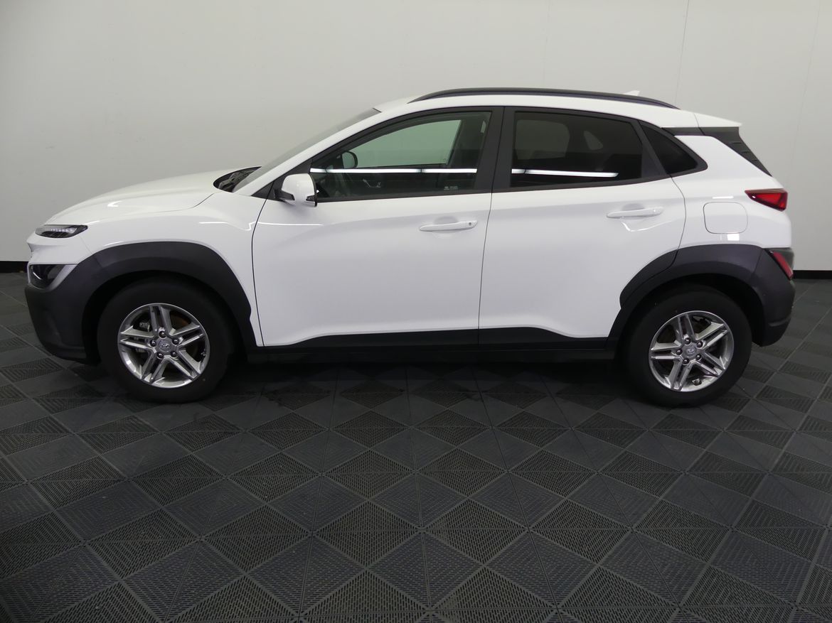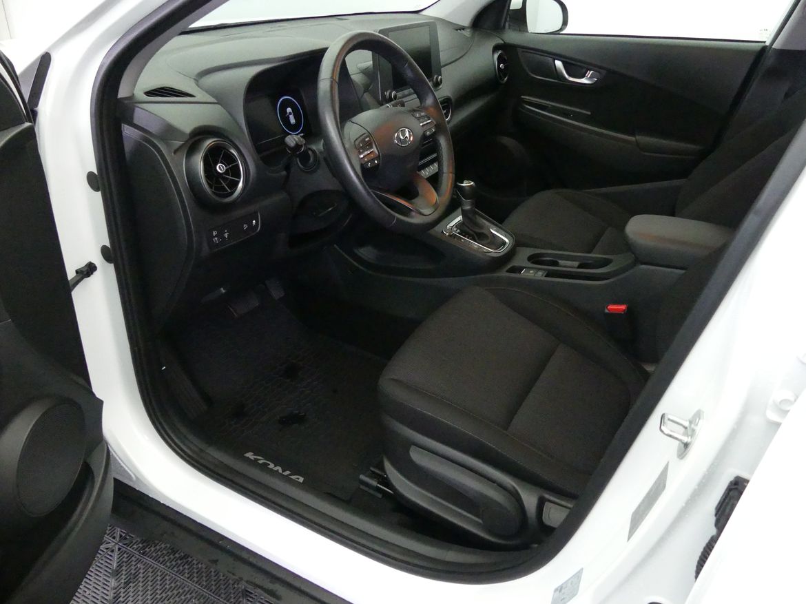 Välutrustad Hyundai Kona Essential Edition med automatlåda. Atlas White.