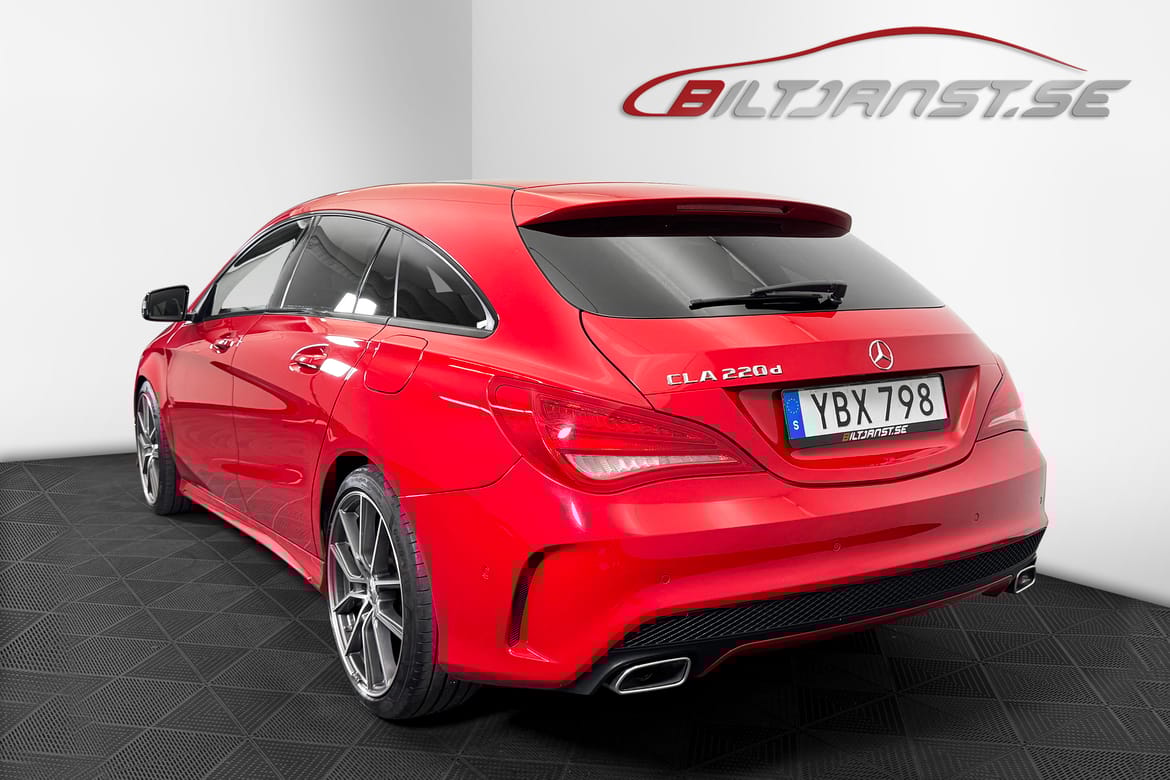 Mercedes-Benz CLA 220d Shooting Brake från 2016 med AMG sport interiör och exteriör. En snygg och välutrustad bil som kombinerar sportig känsla med bra lastutrymme. Bilen har gått 11 268 mil och har en låg årsskatt på 1 103 kr.