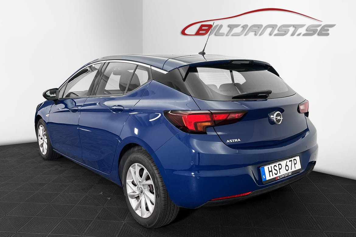 Snygg och praktisk Opel Astra i det populära _Enjoy Plus_-utförandet. En välutrustad och bekväm bil som passar perfekt för både vardag och pendling – låg förbrukning på ca 0,4 l/mil gör den riktigt ekonomisk att äga.