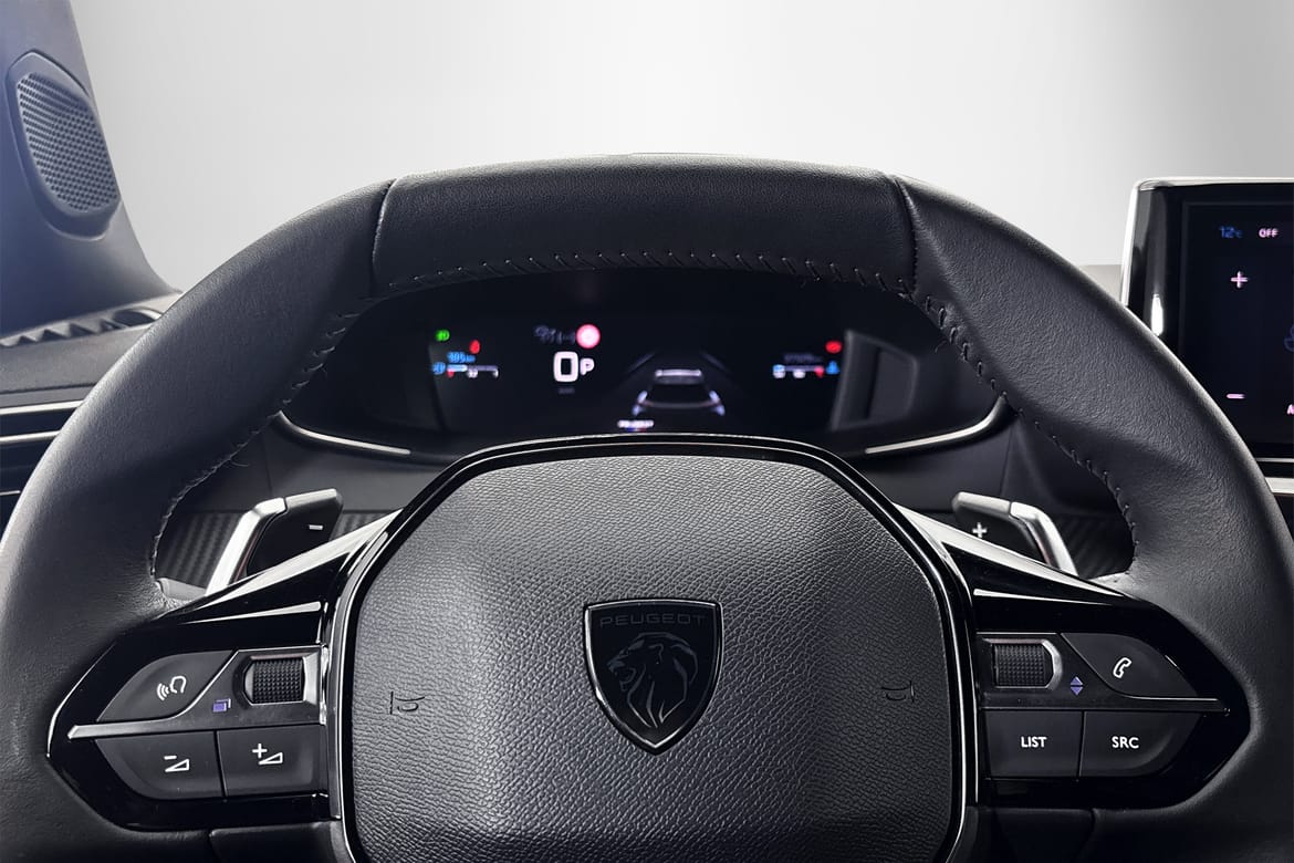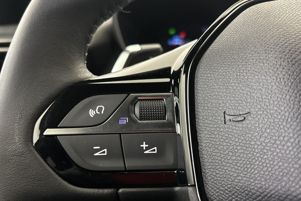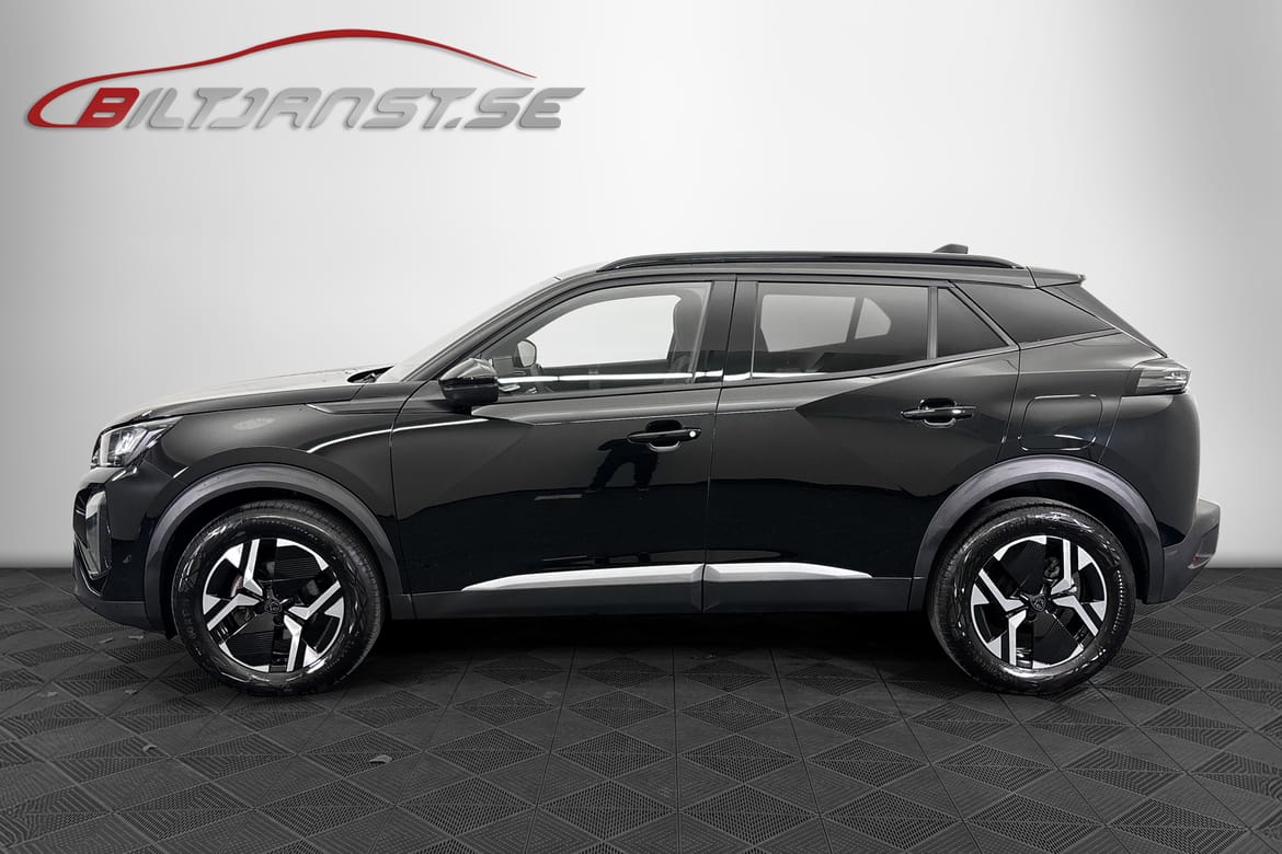 Peugeot 2008 med automatlåda och 131 hk. Bilen är utrustad med touchskärm, ACC/klimatanläggning, adaptiv farthållare, Active Safety Brake, aktiv filhållningsassistans, trådlös Apple CarPlay, halvläderklädsel, LED-strålkastare, parkeringssensorer fram och bak, regnsensor, tonade rutor och rails.