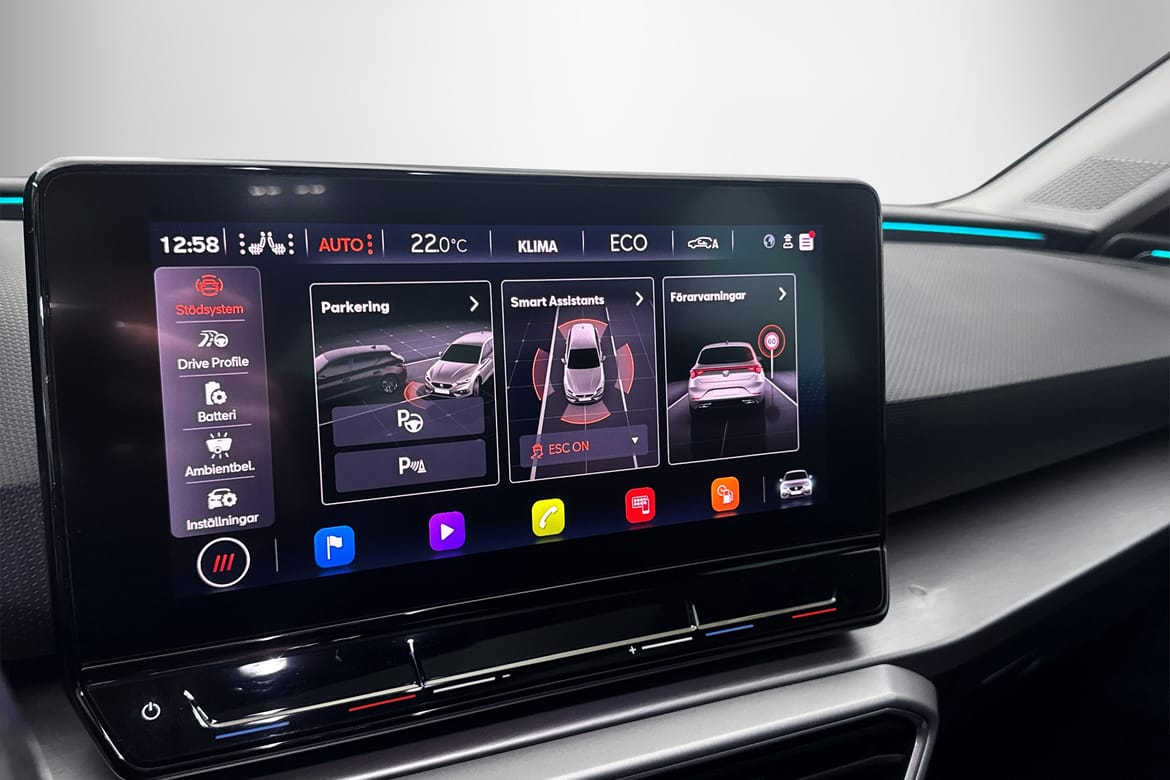 Utrustningsmässigt är detta ett mycket bra exemplar med bland annat adaptiv farthållare, navigation, digital cockpit, Apple CarPlay, backkamera samt parkeringssensorer fram och bak med parkeringsassistans. Säkerheten är hög med funktioner som kollisionsvarnare, filhållningsassistans och skyltigenkänning. Komforten är också på topp med keyless entry och start, elektrisk taklucka i glas, parkeringsvärmare med tidur, rattvärme och stämningsfull ambient belysning.