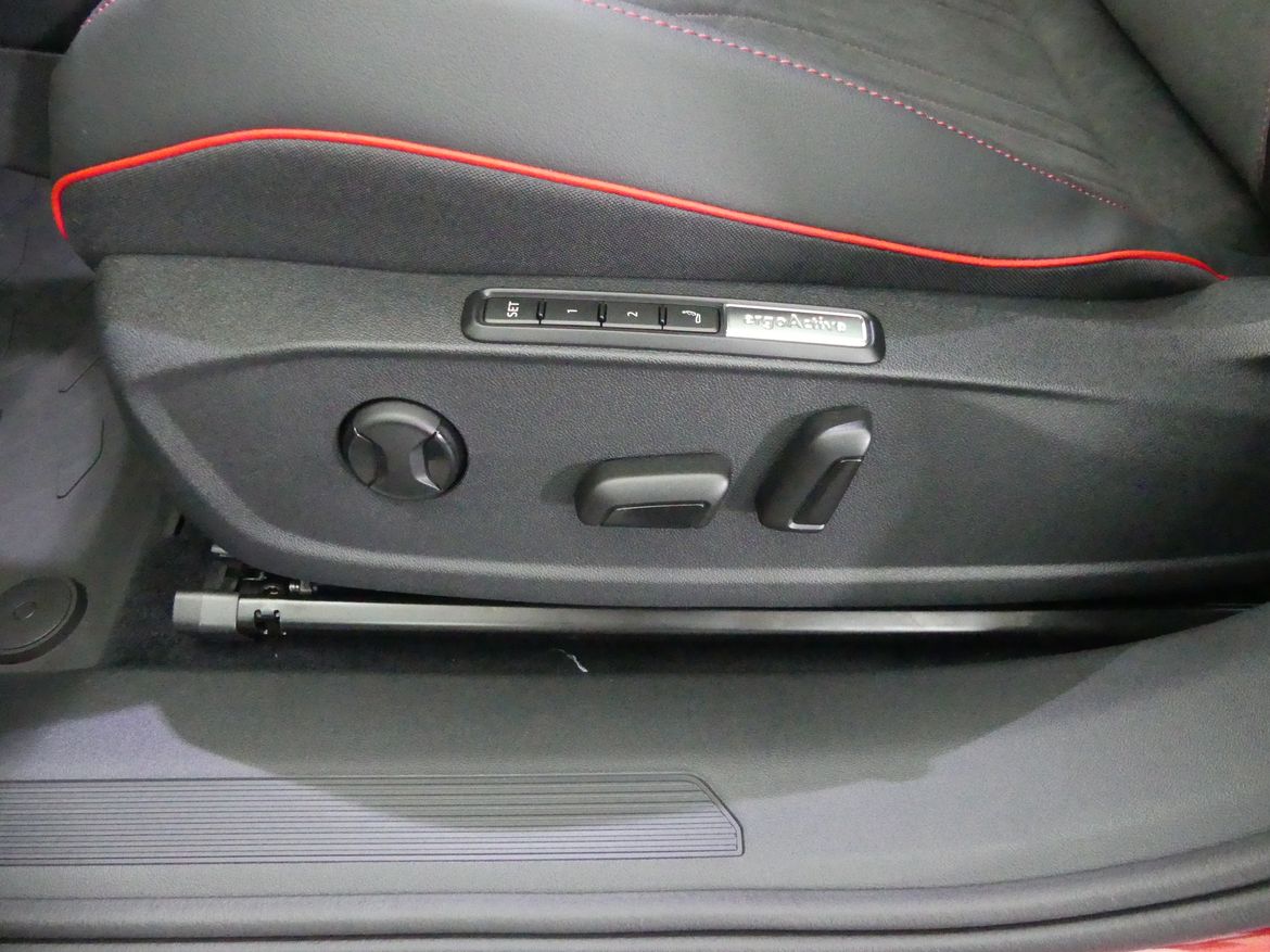 Interiören är sportig med Top Sport-stolar, manuellt utdragbara lårstöd och hög kvalitetskänsla rakt igenom. Säkerhets- och bekvämlighetsfunktioner som Keyless Access/Go, filhållningsassistans, backkamera och intelligent park assist gör varje resa enkel.
